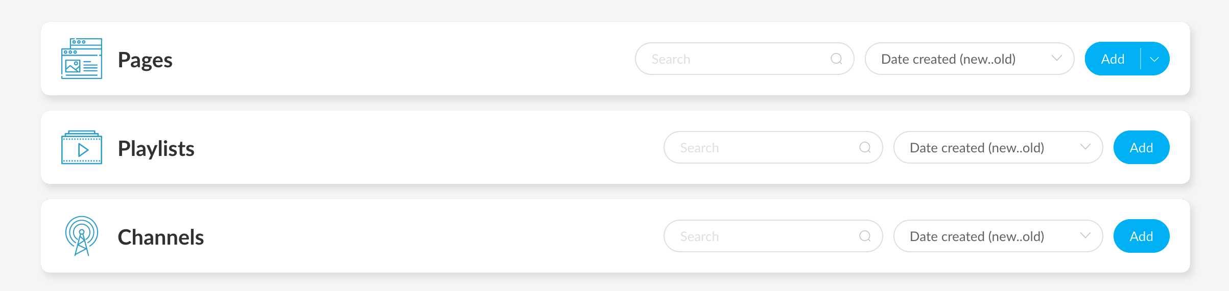 The nice thing is that you can create as many dashboards as you like within your subscription. That way you can create isolated silos of content. In addition, you can grant each user access to specific dashboards. This is a great mechanism for larger organizations to give each department (for example) its own signage workspace.